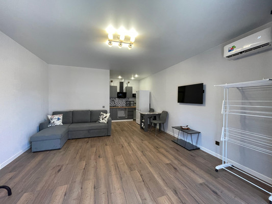 Квартира меблирована:● 2х спальный диван● кухонный гарнитур● 2х створчатый шкаф● стол, 2 стулаТехника:● варочная панель● духовка● холодильник● стиральная машинка● кондиционер