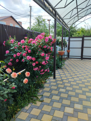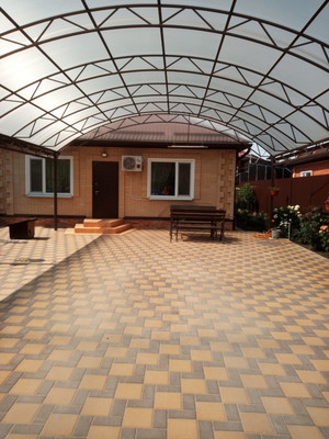 А что на участке?Аккуратный двор с плиткой перед домом и навесом – место для отдыха и парковки.