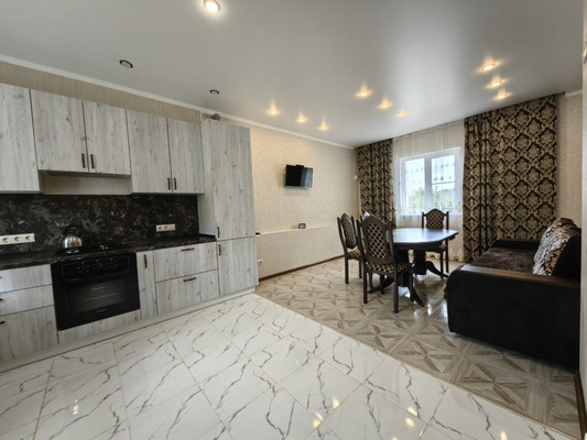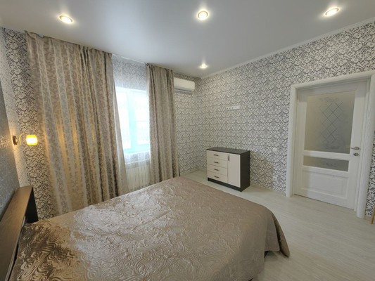 Внутри дом полностью готов к заселению. Проведён качественный ремонт в современном стиле по евроремонту: использованы качественные материалы, аккуратно отделаны стены и продумана планировка. Установлены независимая система отопления, тёплые полы и кондиционеры — всё для комфортного проживания в любое время года. На первом этаже разместилась просторная кухня-гостиная, которая станет центром семейных встреч и приятных вечеров. Также на этаже расположены большой санузел и кладовая комната для хранения вещей.