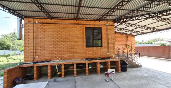 Участок:- Капитальный забор - Навес - Зона барбекю с раковиной и газовой плитой - Место для сада или огорода