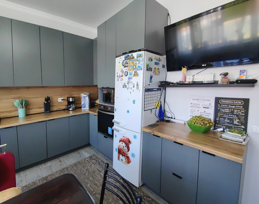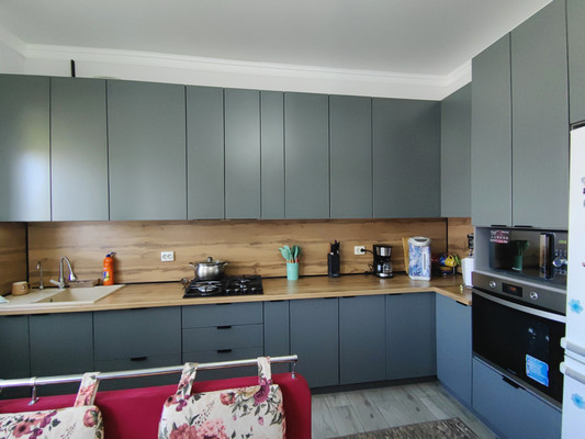 Бонусом в доме остаётся оборудованный кухонный гарнитур премиум класса со встроенной техникой: варочная панель, духовой шкаф, вытяжка.