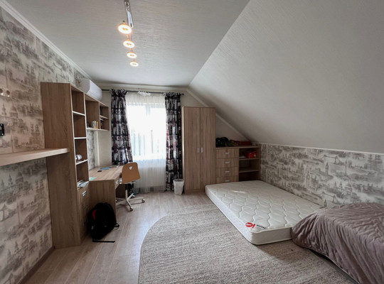 4 изолированные спальни позволят разместить всю семью и даже создать гостевую комнату. Одна из спален со своей гардеробной и санузлом. Так же есть 2 полноценных общих санузла (на каждом этаже). Просторная изолированная кухня, со всей мебелью и техникой, которые входят в стоимость, являются большим плюсом, как и большой зал. Так же в доме имеется капитальный гараж с установленной автоматикой для открытия.К дому подключены все коммуникации