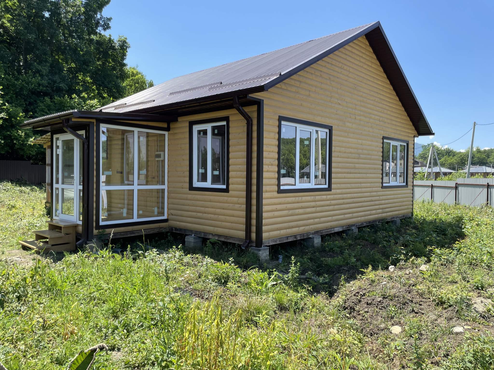 Продажа жилого дома в уникальном месте!!! Желаете приобрести жилой дом вдали от городской суеты? Тогда Наше предложение точно Вам подходит! Новый жилой дом расположен в живописном месте, вблизи одного из чудес природы- Гуамского ущелья. Адрес: переулок Газнийский, х. Гуамка, Апшеронский район, Краснодарский край. Дом каркасный, построен по финской технологии. Выполнен полностью из экологически чистой древесины. Одноэтажный жилой дом общей площадью 92,8 кв.м. Включает в себя тамбур (площадью 3,52 кв.м.), две спальных комнаты (площадью 11,25 кв.м. каждая), студия (площадью 32,9 кв.м.), веранда (площадью 25,5 кв.м.), с/у (площадью 8,35 кв.м.). В доме обеспечено электроснабжение, индивидуальная канализация. Водоснабжение – требуется бурение скважины. Дом расположен на земельном участке площадью от 6 соток. Земельный участок в собственности. Вид разрешенного использования – для ведения личного подсобного хозяйства. Участок огорожен забором. Жилой дом не является капитальным строением!!! Цену и иные вопросы уточняйте по телефону. [#7963158#]