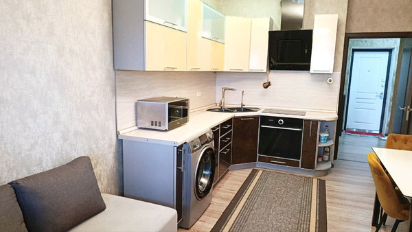 О КВАРТИРЕ:— Расположена на 17 этаже 17 этажного дома.— Общая площадь квартиры 43.5 кв. м + 4 метра балкон.— Функциональная планировка: жилая площадь 18.6 кв. м, кухня 13.7 кв. м, ванная комната 4.8 кв. м, прихожая 6.4 кв. м, лоджия 4 кв. м, высота потолков 2.8 м.— Ремонт: евро.— Мебель: кухня оборудована современной техникой (духовой шкаф, плита, вытяжка, микроволновая печь, стиральная машина, кондиционер) а так же полностью меблирована (раскладной диван, обеденный стол, стулья), комната полностью готова к проживанию (большой диван, двуспальная кровать, установлены шкафы, тумбы и кондиционер), в ванной комнате установлена современная душевая кабина, в прихожей расположен вместительный шкаф-купе.