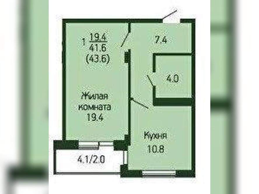 - Общая площадь 45.2 м²
