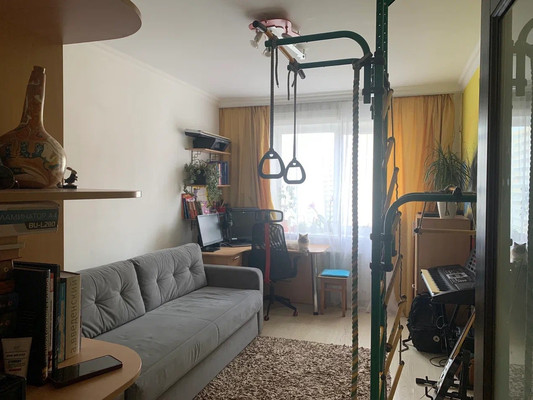 О КВАРТИРЕ: — Расположена на 11 этаже 11 этажного дома— Общая площадь квартиры 55,5 кв. м. — Функциональная планировка: кухня 12 кв. м, жилая площадь 34,2 кв. м, Высота потолков 2,7 м. — изолированные комнаты. — мебель и техника остаются частично