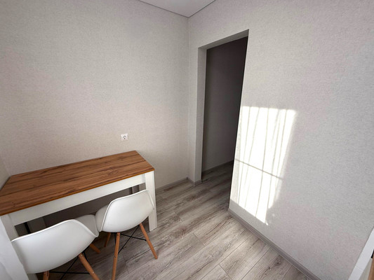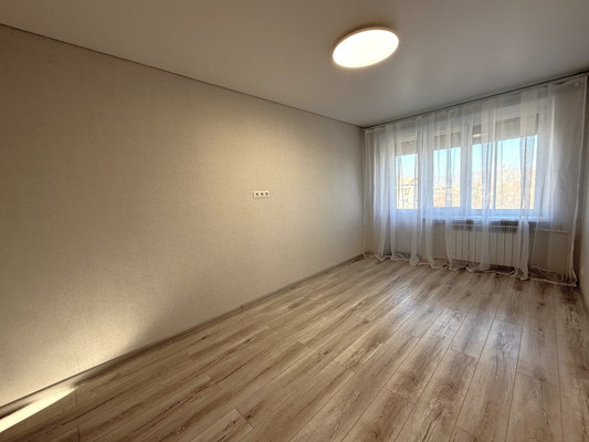 Сделан новый ремонт, залит пол, выровнены стены, заменена электропроводка, МПО, натяжные потолки. Установлена новая кухня.