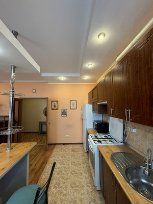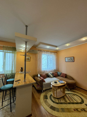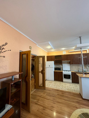 Жилая площадь составляет 14.4 квадратных метров, а кухня занимает 21.8 квадратных метра. В квартире выполнен современный ремонт. Санузел совмещённый, что является удобным решением для экономии пространства. Окна квартиры выходят во двор, благодаря чему в квартире всегда спокойно и тихо.